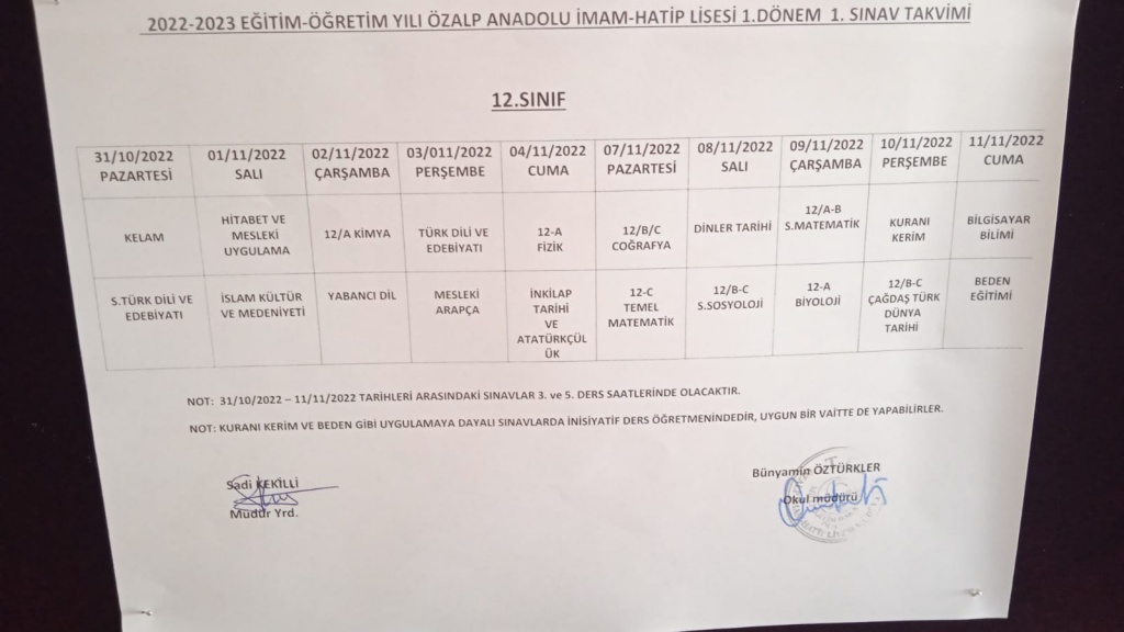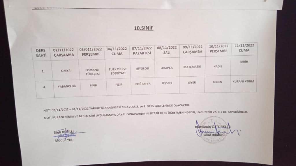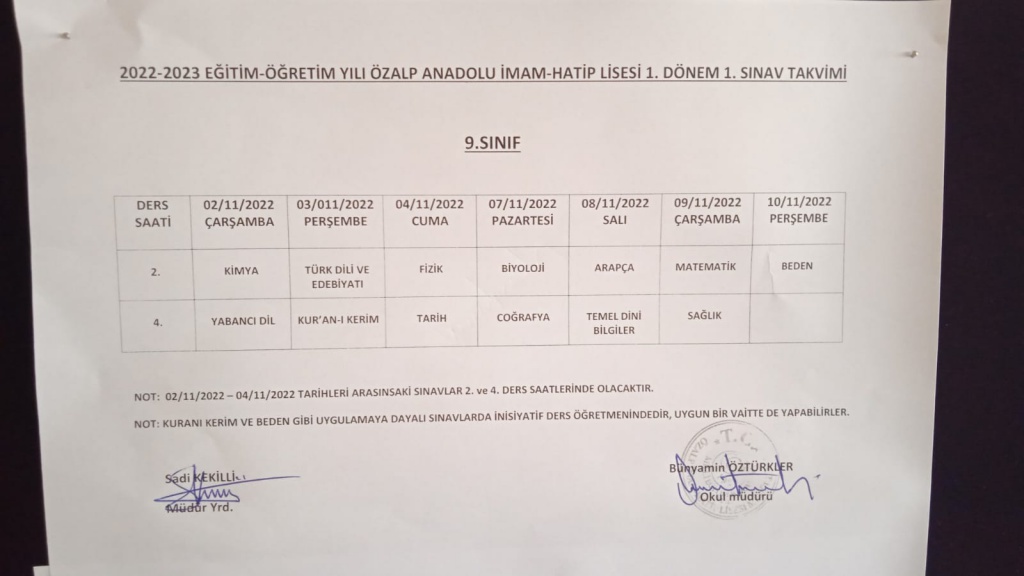 I. DÖNEM I. ORTAK SINAV TAKVİMİ